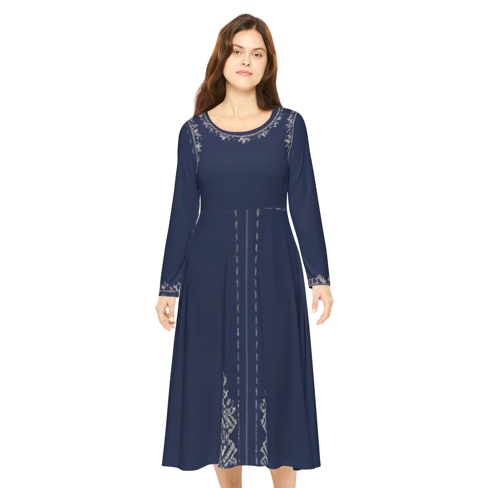 A stylish Women's Long Sleeve Dance Dress with a gradual blue lining, perfect for dance rehearsals or performances. The vibrant colors and high cut neckline add a touch of elegance to the look. Ideal for dancers and performers, suitable for dance recitals, competitions, and performances.